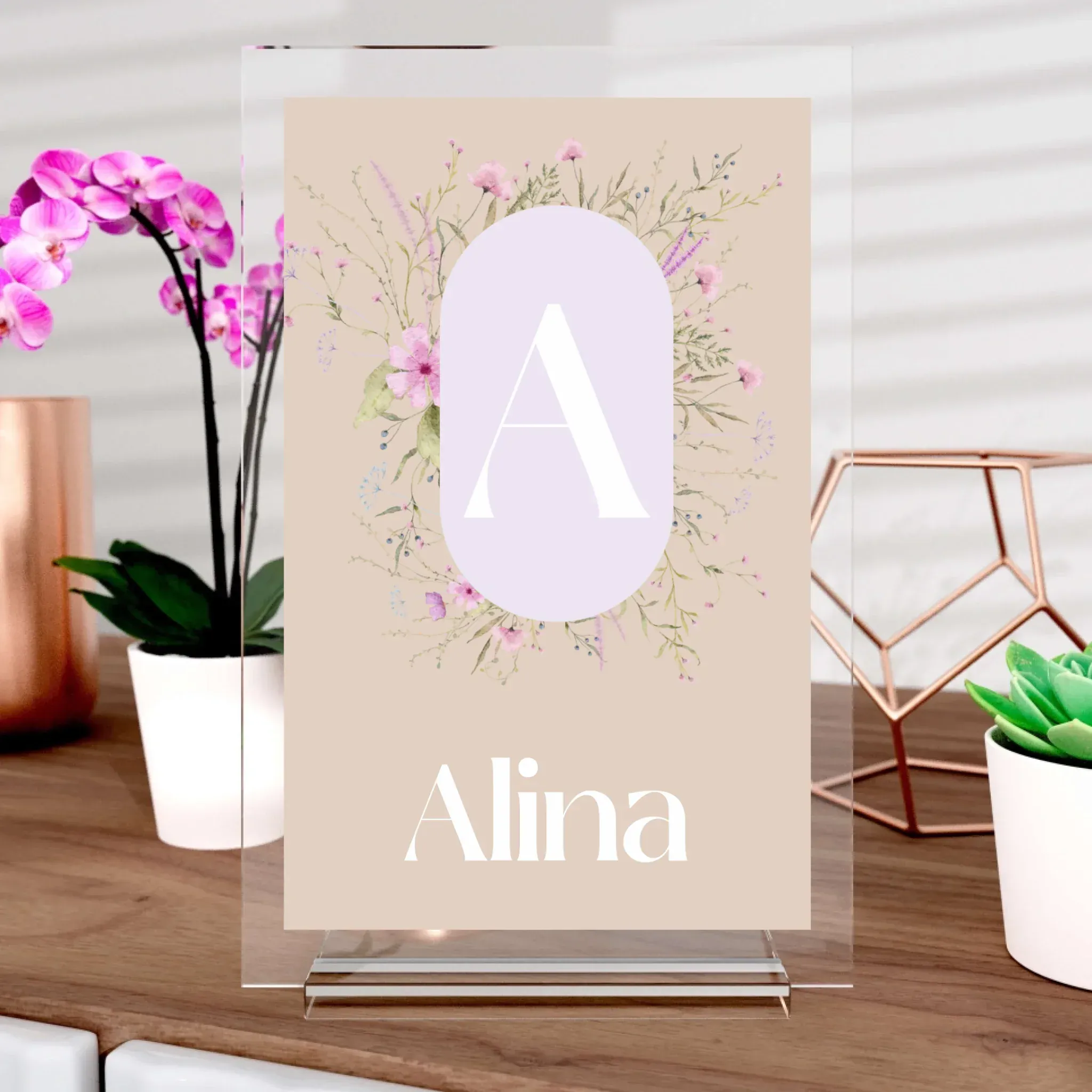 Manche Dinge gehören einfach ins Rampenlicht – und dein Name ist definitiv eins davon. Mit unserem „Letter Style“ Wandbild holst du dir ein Design nach Hause, das schlicht, edel und dabei absolut persönlich ist. Ob für dich selbst oder als Geschenk für einen besonderen Menschen – dieses Bild kombiniert deinen Anfangsbuchstaben, einen wunderschönen Blumendekor und deinen vollständigen Namen zu einem Unikat mit ganz viel Charakter.