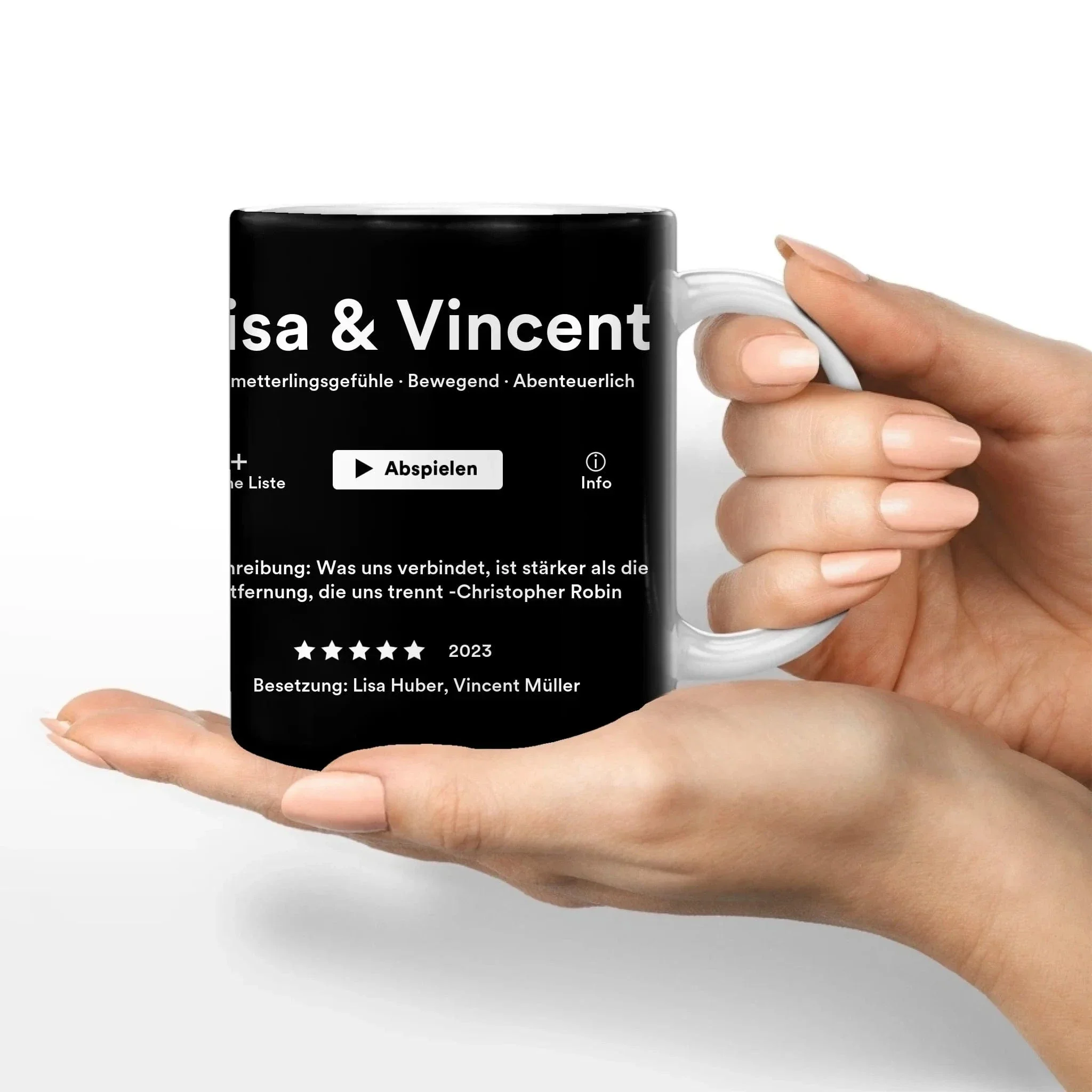 - die Movieposter-Tasse lässt sich individuell auf dein ganz eigenes Drehbuch anpassen (Genre, Bild, Namen, Jahr usw.).